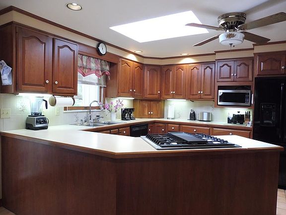 Desirable Bungalow with four bedrooms and 2 baths on corner lot. Long term owners have carefully maintained and updated this home. Large living room with a pellet stove and access to enclosed porch. The fully applianced kitchen features custom Cherry cabinets and a separate desk area. First floor also offers two bedrooms, tiled full bath and laundry. French doors from kitchen lead to the three season room overlooking the manicured back yard, basketball court and pool. The sun filled 2nd floor has alot of additional storage/closets space. Master bedroom with large screen TV and palladium window. There is also a separate deck area. Two car detached garage. Replacement windows. Much to offer!