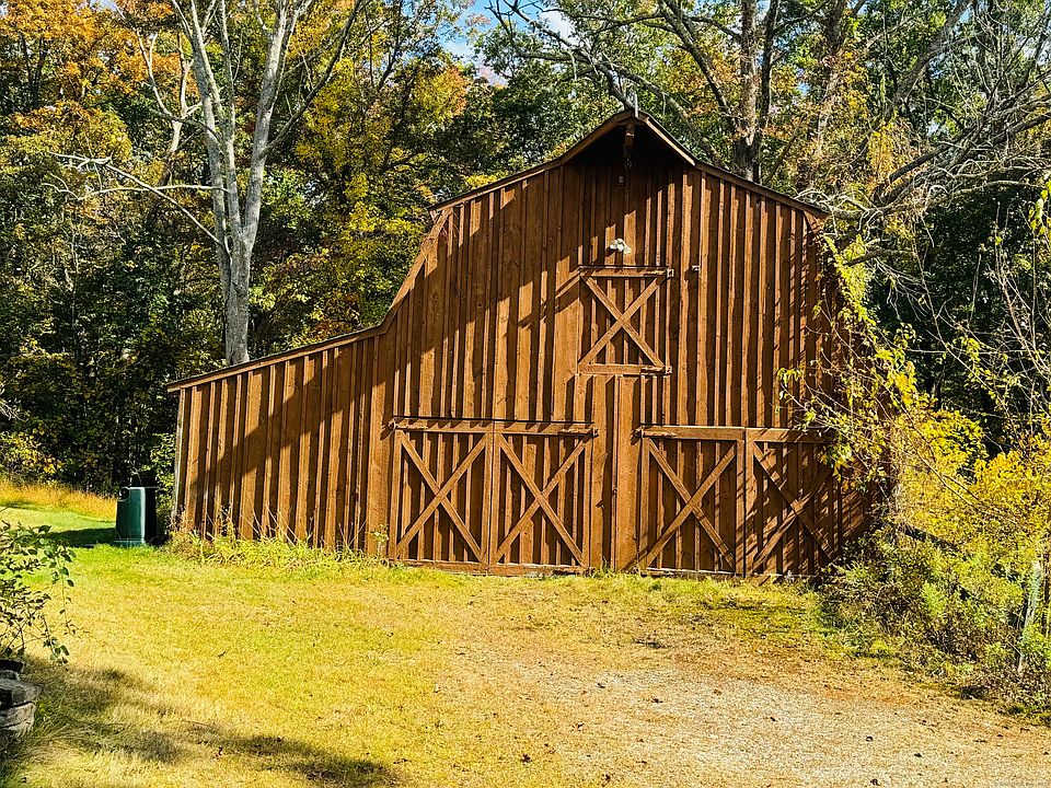 PRIVATE 2.5 ACRES sits this One of a kind LOG CAPE home w/ HUGE 576 sq ft BARN w/ LOFT and formerly 2 horse stalls! 8 x 20 COVERED porch to enjoy your FALL evenings. Open floor plan has FIREPLACE living room open to dining and kitchen area. 3 bedrooms on first floor, 2 bathrooms Upper bedroom has 1/2 bath and overlooks living room. 8 x 28 Enclosed porch leads out back to barn. Fireplace in unfinished lower level. UPDATED boiler. Back 1/2 of roof could use new shingles, sold as is where is