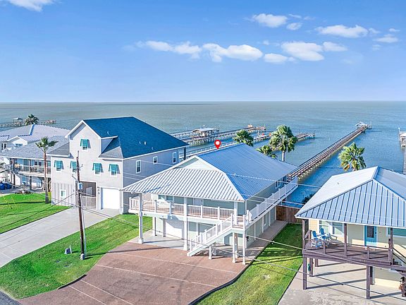 Escape to The Pearl of the Bay, an elite Copano Bayfront property distinguished by its 600' private pier, complete with cleaning station, electricity, water and an expansive T-head. The double handrails provide enhanced safety while underscoring the meticulous attention to detail that defines this property. The upper-level offers a bay view, open-concept design, granite countertops, and handcrafted all-wood interior finishings. No sheetrock was used in the construction of this home, ensuring superior durability and moisture resistance. A spacious primary suite captures sweeping water views and elevates everyday living to resort-style comfort. Constructed with SIP panels, the home delivers remarkable structural and windstorm integrity, energy efficiency, and enduring strength. Enjoy entertaining in the oversized, fully equipped kitchen, complete with double ovens-- a coastal chef's dream! The lower level features its own fully independent 1/1 private residence, ideal for guest accommodations or rental income. With two distinct living quarters, this property offers flexibility seldom found along the coast-live in one, rent the other, or simply enjoy the luxury of thoughtfully designed space for family and guests. Outdoor living is elevated to an art form. A wraparound porch featuring structurally composite railing frames the home, and a cargo lift adds effortless access. Both the garage and patio feature epoxy flooring, creating a clean, durable, and low-maintenance finish and a glass cooktop kitchen makes outdoor cooking a breeze. Town center, restaurants, shopping and groceries are all within a 10-minute reach. Offered fully turnkey, this estate conveys with every carefully curated detail-including interior and exterior furniture, local artisan decor, kitchenware, appliances, fishing equipment, and even the golf cart to fully envelop yourself in the resort-style coastal living experience! Simply arrive and embrace the luxury of coastal living at its finest!