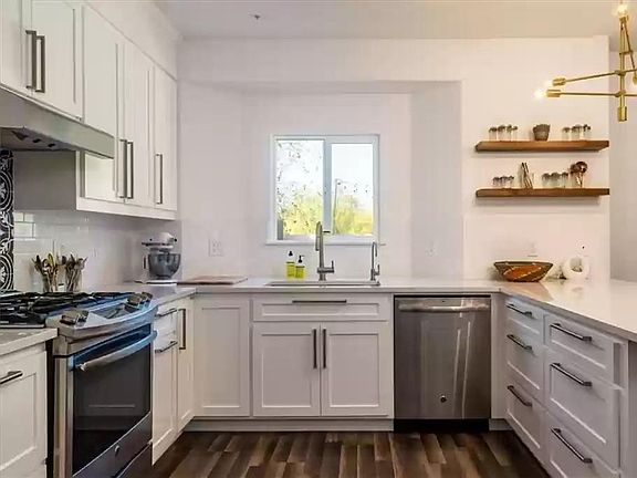 Beautiful turn key townhome with gorgeous upgrades - quartz countertops in the kitchen, custom birch shaker cabinets, Kohler sinks, tile subway backsplash, and soft close doors. Nicely remodeled bathrooms with new vanities, Carrara marble counter tops, flooring and toilets. Custom closet system in Master walk in closet, laminate flooring throughout, recessed lighting, 2 car attached garage. The list goes on! Renter pays all utilities (Gas, Electric, Trash, Water/Sewer, Internet) No Smoking