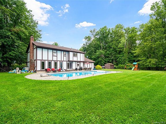Beautiful Central Hall Colonial sitting on 4.65 acres, 5 bedrooms 3 full baths with lovely flooring throughout, spacious eat in kitchen with granite countertops/stainless appliances also opens to family room that features fireplace and exposed brick wall, has palatial formal living room and dining room, master suite with jacuzzi and walk-in closet, expansive fenced backyard with heated in-ground pool, two car garage. Close to NYC transportation, NJ shopping, close to major highways. Top rated Suffern schools.