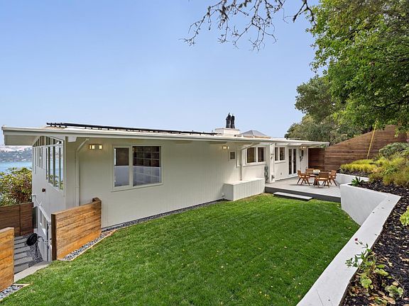 Nestled in one of Sausalito's most sought-after neighborhoods, this iconic 4-bedroom, 2.5-bath mid-century modern retreat showcases sweeping bay views, single-level living on the main level, and seamless indoor-outdoor connections. From the effortless stairless approach at the driveway, you enter into a striking entry foyer that unfolds into an airy open floor plan featuring a timeless kitchen and family room that opens to a patio and lush yard ideal for play and gatherings. The elegant dining and living rooms appear to float over the bay, complemented by a central powder room, guest bedroom (currently used as an office), and luxurious primary suite. The lower level offers two expansive bedrooms with a shared bath, a generous family room, and an oversized 2-car garage. Nearly every space blends indoor comfort with outdoor living, while enjoying privacy and all-day sun. The expansive driveway enhances autonomy with ample parking, framed by mature landscaping. With its southeast orientation, inspiring views, and short walk to Caledonia Street, Sausalito's thriving downtown, and easy access to 101, this versatile, stylish mid-century modern gem truly checks every box.