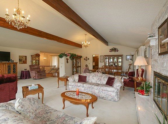 One of a kind property on the golf course. Ranch design with walk-out basement. Main level has open floorplan with vaulted ceilings and travertine rock fireplace. Basement level includes family room with brick fireplace. Enjoy the backyard park like setting and view, from the veranda, of the #16 green on the golf course. Maintenance free exterior with new roof, steel fascia/soffit and gutters.