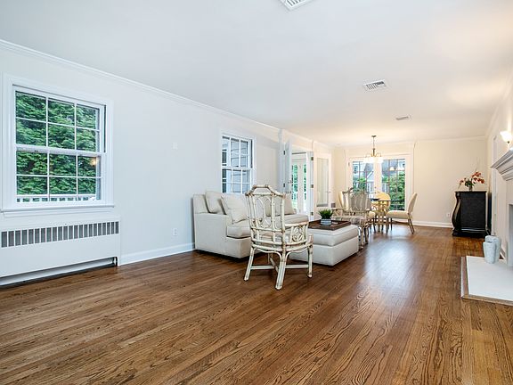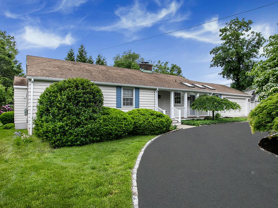 Enjoy the convenience of one floor living in this Ranch style home ideally located in the sought-after Milton Point neighborhood. Two blocks to Rye Town Park & Beach and a short walk to elementary school. Charming front porch opens to the entry hall and kitchen with sub-zero refrigerator, marble counter tops and an adjacent breakfast nook featuring access to laundry room and two-car attached garage. Spacious dining area/living room with fireplace has doors opening to decks and den with ceiling fan and tile floor providing an enviable indoor/outdoor flow. Hallway off main entrance foyer leads to the master bedroom suite with window seat, built-ins, walk-in closets and large bath boasting marble, Jacuzzi, dual vanity and seamless glass shower. Two additional bedrooms and a hall bath complete this living space. Home offers hardwood and tiled floors, multiple skylights, two decks, ample natural light and pull-down attic. Nestled on beautiful .23 level acres with circular driveway and two large decks. Home offered As Is. Rye City has the lowest effective tax rate in Westchester County.