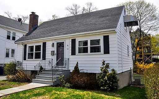 Beautiful three-bedroom Cape in desirable neighborhood. Home features modern eat-in kitchen with granite counters, fireplaced living room, and formal dining room with natural woodwork and built-in china cabinet. Freshly painted interior and gleaming hardwood floors throughout. Updates include central AC, heating system, and electrical. Partially finished basement with full walk-out to large fenced yard. Three-season porch off kitchen. Off-street parking. Walk to commuter rail, shops and restaurants.