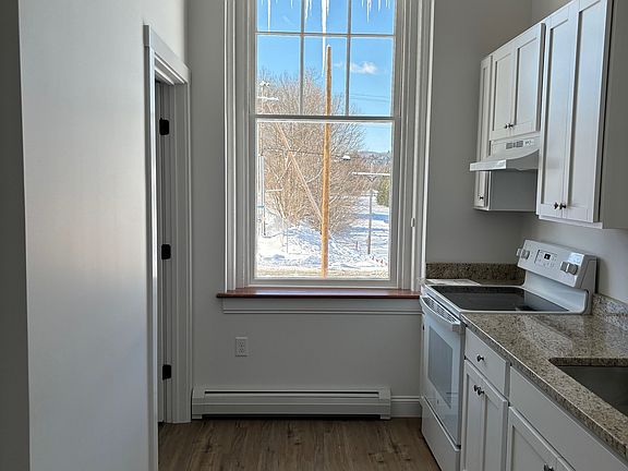 Location, location, location is the name of the game for this gorgeous and newly renovated apartment in a beautiful historic building overlooking the Northfield Common. Walking distance to Norwich University and just steps to restaurants and shops. Unit has great natural light with huge windows, high ceilings, a clean & airy feel coupled with quality craftmanship and details that can only be found in a historic building. Neutral color pallet (gray/white) throughout with granite countertops in kitchen and bathrooms. All appliances, including full-sized washer and dryer are new. Located on second floor with off-street parking for one car. Rent is $1650 a month and includes all utilities (heat, water, snow removal, trash removal) except electricity and internet. Available for occupancy on early - mid May. Lease is for one year with option for renewal. $1650 deposit required to reserve. First & last month's rent due at move in. No pets or smoking. Background & credit check required.