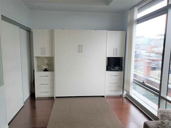 Live In The Heart Of The Distillery District With Restaurants And Shops Steps Away! Spacious 610Sqft Soft Loft With 10Ft. Ceilings. Exposed Concrete And Flr To Ceiling Windws. Enjoy A Juliet Balcony Overlooking Neighbouring Pool And Tons Of Natural Sunlight. Bedroom And Den Both Include A Custom Built Murphy Bed. Den Can Be Used As 2nd Bedroom Or Office. Spacious Closets And Dining Area. Unit Will Be Freshly Painted Upon Move In. Pet Friendly.