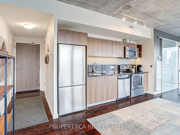 Live in the heart of Toronto's iconic Distillery District in this partially furnished, bright and well-designed split two-bedroom suite featuring floor-to-ceiling windows, soaring ceilings, and a massive wrap-around balcony with breathtaking panoramic views of the city skyline, Lake Ontario, and the Distillery District. The open-concept layout offers excellent bedroom separation, abundant natural light, and seamless indoor-outdoor living-ideal for relaxing or entertaining. Step outside your door and enjoy the charm of cobblestone streets, historic brick architecture, cafes, restaurants, boutiques, and art galleries just feet away. The building blends old-world character with modern living and is known for its environmentally efficient design, with residents enjoying a full suite of amenities including an outdoor pool, fitness centre, party room with bar, library/study space, games room, and more. Conveniently located near Cherry Street with easy access to the DVP and Gardiner Expressway, and streetcar service just steps from the building, this is a stellar opportunity to rent in one of Toronto's most vibrant and sought-after neighbourhoods.