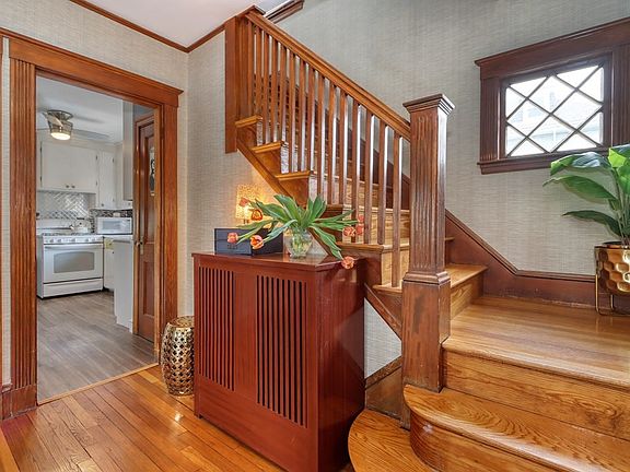 First time on the market! Charming Arts + Crafts colonial full of period detail and designer flair! Situated on a corner, double lot, in a premiere Brighton neighborhood. Extra lot provides a backyard sanctuary, with fenced level yard, perennial gardens, stone walkways, detached garage and driveway. Step into this inviting home through the covered front porch, where you'll be greeted by stunning original woodwork and hardwood floors throughout. Spacious and bright living room opens to the formal dining room w/ original coffered ceiling, wainscoting + built-in hutch. Kitchen has a cozy breakfast nook and the potential to expand! 3 bedrooms upstairs and renovated full bath with clawfoot soaking tub, and separate shower. New roof and gutters. Easy access to public transportation, St. Elizabeth's, Brighton Center and within minutes to the new Boston Landing, that offers restaurants, shopping, live entertainment and commuter rail stop. Experience a thriving live/work/play neighborhood!