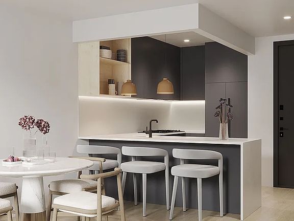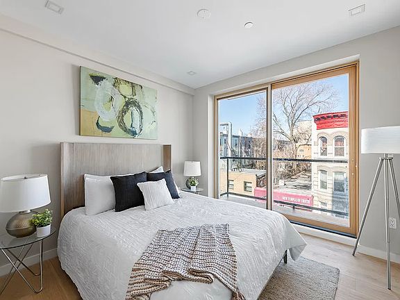 ** Sponsor is covering Two years of Common Charges for Contracts signed up to September 30th 2023. ** An elegantly crafted condo nestled in a quiet residential enclave in Bushwick, this brand new 2-bedroom, 2-bathroom home has private outdoor space and offers a laidback Brooklyn lifestyle close to public transportation and local restaurants, bars, and cafes. Floor-to-ceiling double-glazed Pella windows let in an abundance of natural light, highlighting beautiful wide plank pre-finished white oak floors and high ceilings with recessed lighting. Daikin multi-zone split units provide precision temperature control in every room. Residents are greeted by an open-concept living room, dining room, and kitchen that flows out onto a private balcony perfect for sun lounging. The custom Nobilia kitchen boasts chic Silestone countertops and backsplashes, wall-mounted pot filler, Summit wine cooler, Grohe faucet, and integrated high-end appliances from Bertazzoni and Fisher & Paykel. The primary suite has double reach-in closets and a serene en-suite bathroom with imported Spanish tile walls and floors, a custom double vanity, oversized vanity mirror with built-in storage, floating Fine Fixtures toilet, and a walk-in shower with smart-touch Grohe fixtures. The second bedroom has a deep closet and easy access to a second full bathroom. The home comes with a Samsung washer and vented dryer. 68 Eldert Street is a boutique condominium close to bustling pedestrian strips like Broadway and Bushwick and Wilson Avenues. Nearby greenspaces include Saratoga and Irving Square Parks, and accessible subway lines include the J/Z/L. The building has a furnished lobby and elevator as well as a video intercom system, internet pre-wiring, and a common rooftop deck with private cabanas available, a BBQ hookup, and picturesque city views. Pets are welcome. Disclaimer: The complete offering terms are available in an offering plan from the Sponsor, 68 Eldert Street LLC, located at 289 Meserole Street Brooklyn, NY 11206. File No. CD22-0012. Equal Housing Opportunity.