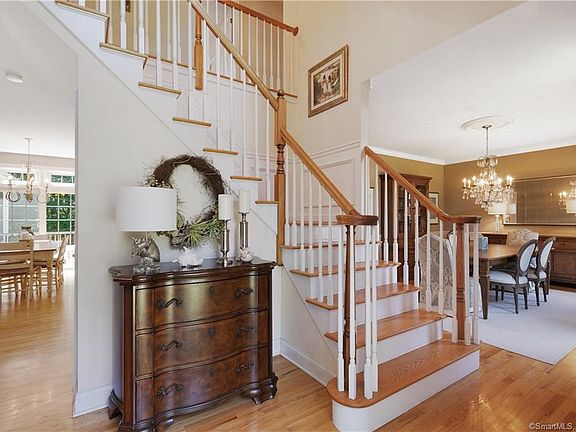 This 5 bedroom, 3 full and 2 half bath colonial with in-law 'apartment' is set back on a 1.46-acre lot within a desirable cul-de-sac. Boasting 4,614 SF of finished living space, this home was thoughtfully designed with traditional detailing, hardwood floors throughout, beautiful millwork including wainscoting, crown molding, transom and Palladium windows. A gracious two-story foyer is flanked by the living and dining rooms. Granite counters, high-end stainless steel appliances and a center island in the updated kitchen flows seamlessly to the breakfast nook and family room. A gas-operated fireplace in the family room creates a perfect spot for friends and family to gather. An office off the mudroom featuring cathedral ceiling, built-ins and a beautiful wood-burning fireplace with stone surround offers a more private, quiet space for those working remotely. Double French doors open to the deck. A light and bright sunroom off the family room which overlooks your private backyard provides a relaxing spot after a day or work or play. Multiple access points to the deck allows for easy indoor to outdoor entertaining. All of the bedrooms are found on the second floor, including the primary which features two walk-in closets and a full bath with dual sink vanity, tub and separate shower. The bonus room provides an in-law suite with a wood-burning fireplace in the sitting area/family room, kitchen and 5th bedrooms with full bath; perfect for multi-generation living, au-pair or guests. Additional amenities include a 3-car garage, central A/C, invisible dog fence (U/G wire only), walk-up attic, full unfinished walk-out basement ***Back on market due to Buyers remorse. An unfortunate situation can be your gain*** Come see!