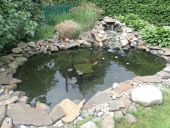 Beautiful center hall colonial chocked full of charming details! Leaded window accents, glass panel pocket doors, wood burning fireplace, natural wood trim. Spacious rooms...Living room is 27 x 14. Glass door leads from living room to large den. Dining room features a beautiful box beam ceiling & built-in china cabinet. The renovated country kitchen has stainless appliance, granite counters, center island and a unique open ceiling design. Four bedrooms on the 2nd floor, one with glass doors to its own balcony! One bedroom being used as an office & one being used as a walk-in closet. 5th bedroom is on the 3rd floor along with walk-in closet and additional storage room. Finished basement & new gas boiler. Beautifully landscaped yard with patio and koi pond and expansive lawn beyond the driveway/garage.