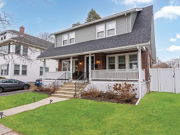 Stunning home with extensive renovations that preserve original charm. Open first floor with updated windows, 2019 half bath, and beautiful 2019 kitchen with white cabinets, stainless steel appliances, marble countertops, and island. The living-dining area displays a center fireplace, hardwood floors, and recessed lighting. The kitchen leads to a finished lower level with playroom, 2019 full bath, and storage. The second story has four bedrooms, hardwood floors, recessed lighting, and 2019 full bath. The exterior has an oversized front porch with beadboard ceiling, and the fabulous fenced-in backyard has a 2019 deck, 2021 paver patio, 2021 shed, cedar raised gardening beds, mature plantings, rose bushes, and row of espalier apple trees. Other post-2018 updates: roof, dual zone HVAC, A/C units, water heater, Tesla/EV charging station, washer/dryer, and driveway. Near shops, Franklin School, and commuter routes.