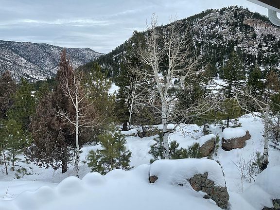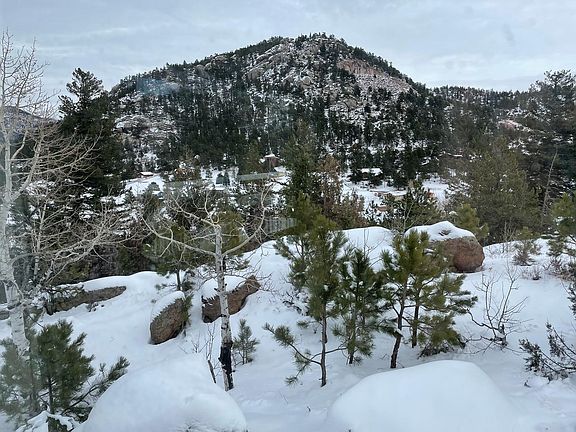 Absolutely amazing views await from the expansive deck of this perfectly maintained charming Pinewood Springs hideaway located minutes from colorful Lyons & a short ride to the awesome beauty of Rocky Mnt. National Park. Perfect for primary residence or vacation home. Master Bedroom with updated bath & French doors, 2 additional bedrooms + bath, amazing flagstone livingrm fireplace, nice kitchen, central air, & lots of storage. Outstanding rock outcroppings located on 1.08 lovely mountain acres.
