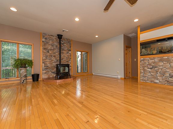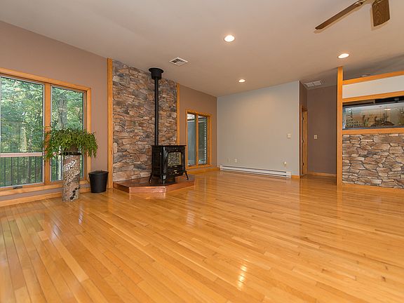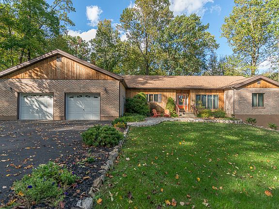 Open concept brick and cedar ranch with 9 foot ceilings. Huge living room/dining room area with hardwood floors and a pellet stove - The kitchen has maple cabinets - granite counter tops/tile back splash. Huge master bedroom on its own wing with hardwood floors - full bath - walk in closet and sliders to the 40 foot cedar deck. 2 additional bedrooms and a full bath on the other wing of the home. 1st floor laundry/mud room - new central air - over-sized 2 car garage - HUGE walk out basement just waiting to be finished - The home sits on a very private 3 acre wooded lot. Good commuter location with access to Rt 78 - Available for immediate occupancy.