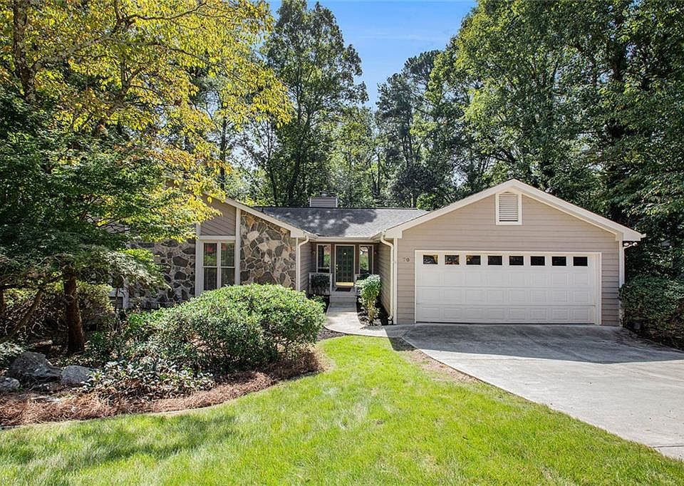Much Loved Home Needs a New Family to Enjoy the Good Memories that Await! 5 Bedroom 3.5 Bath Ranch. Main level Primary Bedroom and Bath. Main level Living Room vaulted ceiling with skylights and gas logs fireplace. Adjoining Dining Room seats 8-10 people easily. Spacious Kitchen with lots of cabinets and two pantries and wet bar. Living room open to large deck overlooking a private backyard. In the fully finished basement is a gathering place for friends complete with a large den, gas logs fireplace, full bathroom and two bedrooms, office, work space and craft space. At this price and this many bedroom and baths, it's perfect for a large family or a small one that wants loads of EXTRA space! Come see this home just waiting for the right buyer to make it their own. Horseshoe Bend neighborhood boasts two lakes with docks, walking paths, and multi purpose field. Only Minutes to Downtown Roswell, Avalon, GA 400 to sneak Downtown Atlanta or for a day trip to North GA Mountains. Perfect location!