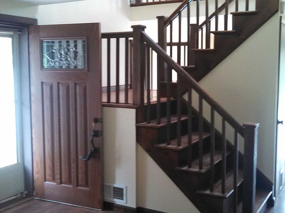 Great home with open floor plan fire place hardwood floors new kitchen dining room living room walk out large double sliders onto deck with arbor above, breezeway and 2 car detached garage with attached greenhouse to he south in back. Upstairs is 2-3 bedrooms with walk in master bedroom closet.