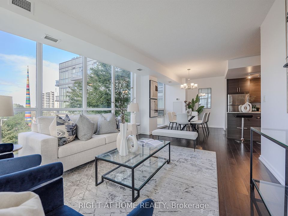 *Don Mills Station At Your Doorstep* Welcome to an exquisite luxury condo, nestled in the prestigious Emerald City Community. This stylish residence offers more than 1000 square feet of living space, and blends modern sophistication with timeless charm, creating a truly elevated living experience. Upon entry, you're welcomed into a freshly painted interior featuring a sun-filled open-concept living and dining area with gleaming floors, soaring 9 foot ceilings, elegant light fixtures, and floor to ceiling windows. The chef-inspired kitchen is equipped with premium stainless steel appliances, granite countertops, a custom backsplash, generous cabinetry, and a convenient centre island. The expansive primary bedroom offers a walk in closet and a four piece ensuite. Enjoy a spacious 177 square foot balcony overlooking the serene courtyard and plush greenery, plus the convenience of one parking space and one locker. At Emerald City, residents benefit from an array of upscale amenities including a cutting-edge fitness center, swimming pool, hot tub, party room, games room, and 24-hour concierge service. Move right in and start enjoying the lifestyle you deserve! The home is conveniently located next to shops, dining, great schools, highways 401 and 404/DVP, and public transportation including Don Mills Subway Station at your doorstep, providing the ultimate in urban living.
