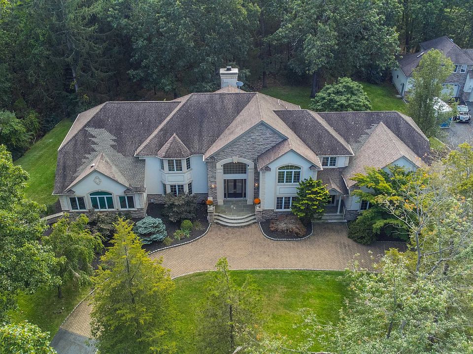 $30,000 incentive towards closing costs & can be used towards rate buy-down. Stunning one of a kind estate nestled on 1 acre only 1 hour from NYC offers 27+ private farm assessed acres, 6 acres is possible for future subdivision for additional home site! 5 BD, 5 Full Ba, 3 half ba. The beautiful stone-paved circle driveway leads you to this stunning Colonial. Unfinished Guest house on right, 6 car garage in total & 1 car lift. The grand foyer has brilliant Italian marble flooring, 2 story ceiling & a gracefully curved staircase. The office & the formal LR open to the indoor heated pool, with cascading waterfall into the pool, which you can use year-round, has a half ba & surround sound system. The gourmet kitchen, conveniently located next to the DR, which offers top of the line Viking appliances, Brand New Bosch dishwasher, granite countertops, large center island, wine cabinet, & a spacious breakfast rm. The sun-filled great rm has 8 large windows & a floor to ceiling stone wood burning fireplace w/ french doors that open to the covered patio and backyard. On the 2nd level you find primary suite with 4 additional bdrms, a bonus rm, 4 full baths. The primary suite has a gas fireplace & stunning en suite with a jet tub, separate shower, dual vanity & complete with a bidet. The basement featuring a 15-seat home theater w/ large viewing screen & a power rm. There' also a bonus rm, gym area, storage, utility, 2nd full kitchen and full bath. Beauty, Nature and Relaxation Awaits!