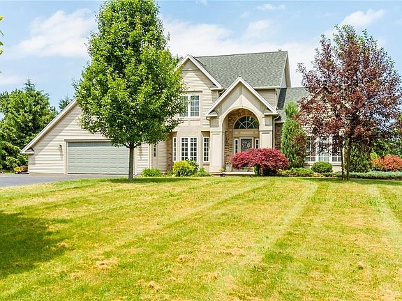 Step into this stunning home nestled on over an acre of land that backs up to over 50 acres of untouched land owned by the town. NEW ROOF JUNE 2019, NEW sump pump, H20 tank and sewage grinder. The 2-story foyer will welcome you home as you walk into the large living room complete with vaulted ceilings, a gas fireplace and floor to ceiling windows allowing natural light to fill the home. The generous eat in kitchen leading out to the FRESHLY PAINTED deck is perfect for entertaining. No home is complete without 1st floor laundry, and this one has got you covered! The master suite is spacious with a walk in closet and master bathroom with a jacuzzi tub for you to relax in. Giant 12 course basement and an over-sized garage with a large driveway gives you all the space you need for storage.