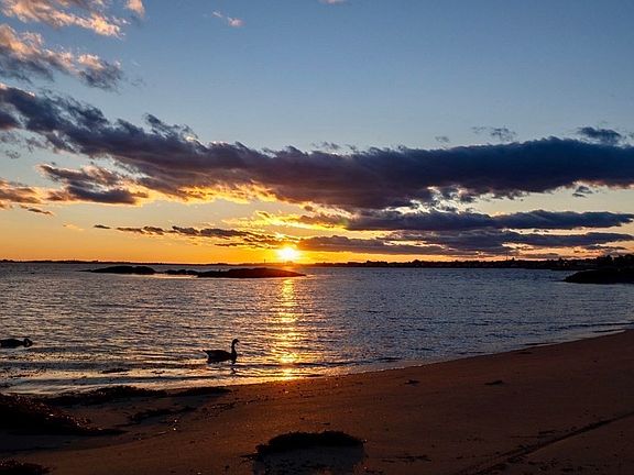 This special oceanside property presents a rare opportunity to live in a peaceful and private section of Galloupes Point, overlooking a private sandy beach. Surround yourself with spectacular and unobstructed views of the ocean, neighboring islands, and Boston skyline, and enjoy both breath-taking sunrises and glorious sunsets. The frolicking seabirds, sun-bathing harbor seals, and jumping fish that inhabit this protected Southwest-facing cove provide year-round entertainment to be enjoyed right from the front porch and second floor deck. Solidly built, this four bedroom, 3.5 bath Colonial-style home boasts an open floor plan in the main living areas, huge picture windows, hardwood floors, ample closet space, and expansive views from both levels, including from the master suite. Live at the beach while still being within easy commuting distance to Boston and the airport! A true Swampscott Gem!