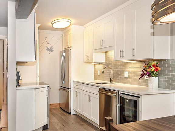 Remodeled "to the studs" this year! Interlude 101 is a 2 bedroom, 2 bathroom ski-in condo located just above Snowmass Village Mall. The remodel has modern finishes throughout such as quartz countertops, porcelain stones, Du Chateau engineered white oak floors, custom built closets, GE Profile appliances, washer/dryer, a wine cooler, towel warmers, custom Hunter Douglas shades, wooden beams and a gas fireplace. Grill on your private balcony and watch the sunset. This condo has an assigned carport, additional storage, reasonable HOA dues, onsite management, and the Interlude just built a brand new spa right outside the front door.