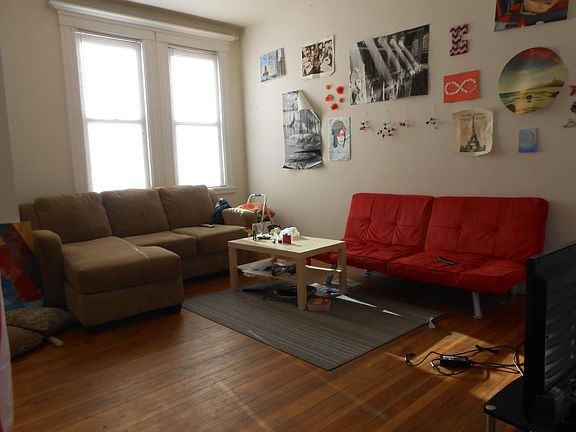 NO FEE! Huge living room with bonus area for a table 4 Large bedrooms with good closet space Rent includes Hot Water Rent includes hot water.