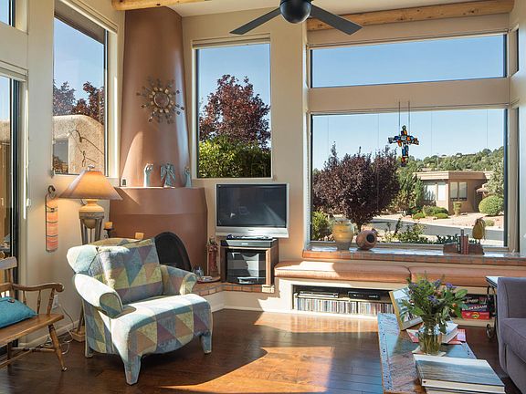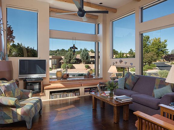 E-Z Care living at its finest! This Townhome is situated such that it enjoys all privacy and space of a single family home, yet no maintenance! Unit has an enormous fully enclosed and totally landscaped yard,it's like living in a park! Everything on timer, greenery abounding. E-Z property for 2nd home or those who like to travel.2 Beds/2Baths + huge office w/custom shelving/a separate Hobby room, skylight,security screens &V-cool film on major windows. Custom window coverings,Both Baths remodeled, kitchen has SS appliances/granite and breakfast bar/Kiva FP in LR/viga beamed ceiling, Saltillo tile, wood, and carpet. Lots of niches for display, Open, light&spacious rooms T/O. Awaken to the beauty of the fully landscaped enclosed yard & enjoy your morning privately. Turn Key! C supplement