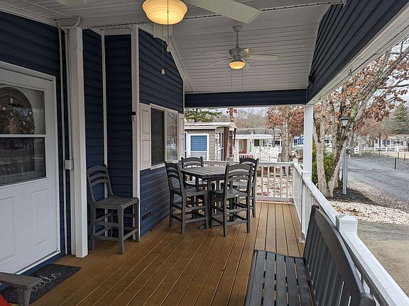 WOW~ this unit has it all! So much to list~ Covered front porch with trek decking and viny railing, ring camera, storm door and a TV. Enter into the lovely Florida room and you will love the open floor plan. Luxury vinyl flooring throughout. The kitchen offers all full-size appliances, including ice and water on the refrigerator. Full size propane stove and microwave above it. Venture down the front hall to the first full bath with ample size shower and tub. 2nd bedroom has full wall of built in and mirrors. Head to the back of the unit and you will find a full-size master bedroom and attached full bath with step in corner shower, walk in closet with shelving and lots of natural light. This unit is located on a cleared corner lot. Large shed is included with electric run to it. Best part, it is located right across from the bath house that is open year-round so you can grab a quick shower in the winter months if you're checking on your unit for the weekend. 3 Tv's are included, and they are all Wi-Fi, only thing needed is one cable hookup which is already in place. Some furniture exceptions, list provided. Where else can you get a house few miles from the shore with all the Seashore Lines has to offer for this price?????