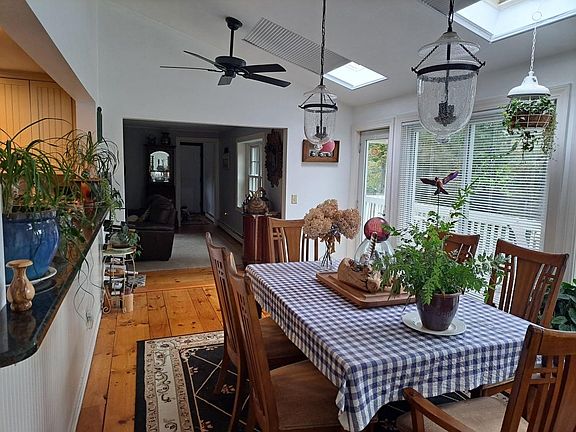 Located 1 mi.from the quaint village of Chester. It features an open floorplan downstairs with four bedrooms upstairs. Recently renovated kitchen and upstairs bath. Refurbished wide board pine floors throughout. Dining room opens up to a large deck, great for year round entertainment. New roof and energy efficient windows throughout home.