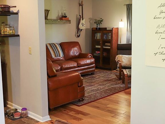 In Town brick ranch charmer! One Level Living with Gorgeous Yard - 1 mile from town. Screen Porch to Relax and Enjoy special times with Family and Friends. You won't believe you are in the City Limits with the Private, Nearly Flat Backyard. Spacious Kitchen with Tile Backsplash. Both Bathrooms have updated Vanities and Ceramic Tile Floors. Engineered hardwood floors. Lower Level has finished ceiling and studded walls ready for new owner to finish for a Game Room/Family Room, Workout Space, Studio or a Workshop. It's also Plumbed for a 1/2 Bath. 2 Car Garage. What a cozy charmer close in and with easy access!