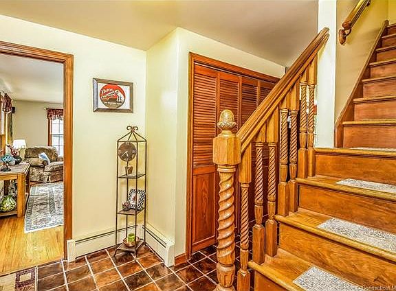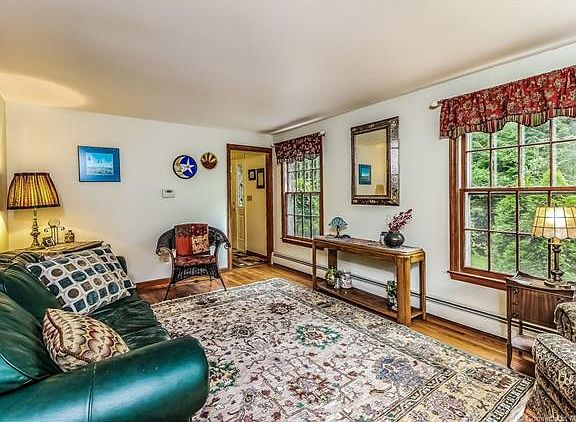 Your own private oasis at the end of a cul-de-sac neighborhood, but only 2 miles from I-95, and 2.5 miles from Madison town center, with its fine arts theater and renowned bookstore. This lovely Colonial has a combination of rustic wide-board and hardwood floors throughout (except for a practical ceramic-tile entryway). Enjoy a crackling wood fire in winter in the family room and the 3-season, screened porch for the remainder of the year. Note the beautiful detail in the brick and wood fireplace surround, as well as the detail in the staircase to the second floor. Company will enjoy the formal dining room, with its unique texturized wall finish. A major plus: city water! 21st century updates include: dishwasher (2005), microwave (2015), new front door (2000), 3-season porch (2008), boiler (2008), roof (2000), oil tank (2016). Madison is well-known for Hammonassett State Park, as well as several other town beaches. It is equidistant from Boston and NYC, and within a half-hour drive to New Haven, home to Yale.