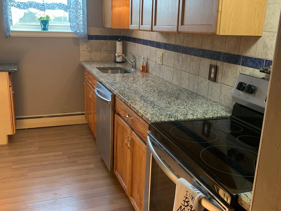 Two bedroom condominium in New Britain. Heating and hot/cold water included in the rental. Quiet and secured place with Cameras in the building and a special entrance keys. New kitchen with new appliances, granite kitchen countertops with tiled walls and floors. Hardwood and tile flooring throughout with fresh painted rooms. Fully equipped with AC, ceiling fan and big closets. Elevator and laundry in the building. Designated parking lot. $1,350 a month and two deposits required. Ready to move in.