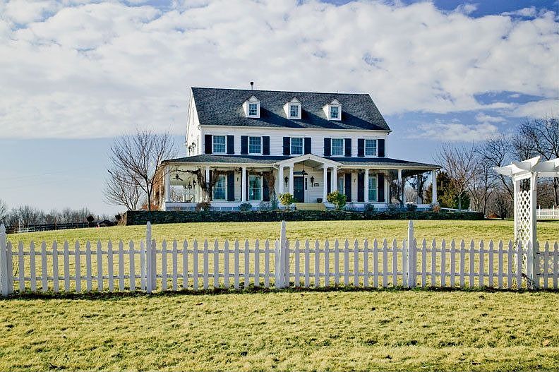 Return to Tara to this center hall colonial with wrap-around porch, 4 outbuildings including 7 stall horse barn with heated room and full bath. A building for indoor riding ring and much more. Panoramic views of 80+ acres of preserved farmland. Enjoy the bucolic stream and open space. A true country retreat.