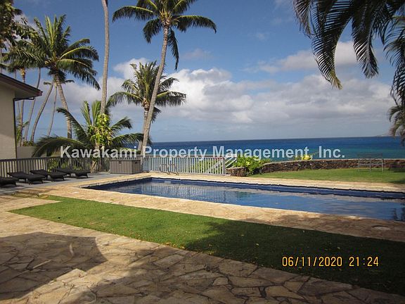 This beautiful, fully furnished, 2,000 sq. ft, 4-bedroom, 2-bathroom home is located at the edge of the ocean overlooking Maunalua Bay all the way to Diamond Head. Located on exclusive Hanapepe Loop, this house is privately walled, includes a 2-car garage and a large yard and swimming pool overlooking the ocean. Requirements: 1 year lease, renters insurance, no smoking, no pets. Tenant pay all utilities (electric, water/sewer, cable/internet). Pool service and yard service are provided.