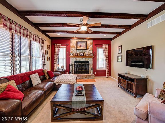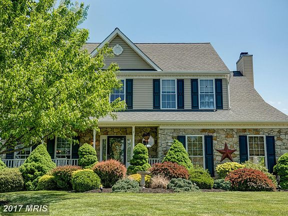 Well-maintained & Professionally landscaped stone front porch colonial Welcomes You! Gorgeous 4BR 2.5BA w/ extra 2ft bump out offering beautiful detail thru-out including 2-story foyer, gleaming hardwood floors, expansive trim&moldings, upgraded kitchen w/ new appliances, sunroom bumpout, sunken fam rm, custom pine beamed ceiling w/ stone fireplace. LRG MST bedroom. 2 outbuildings, new patio & AC