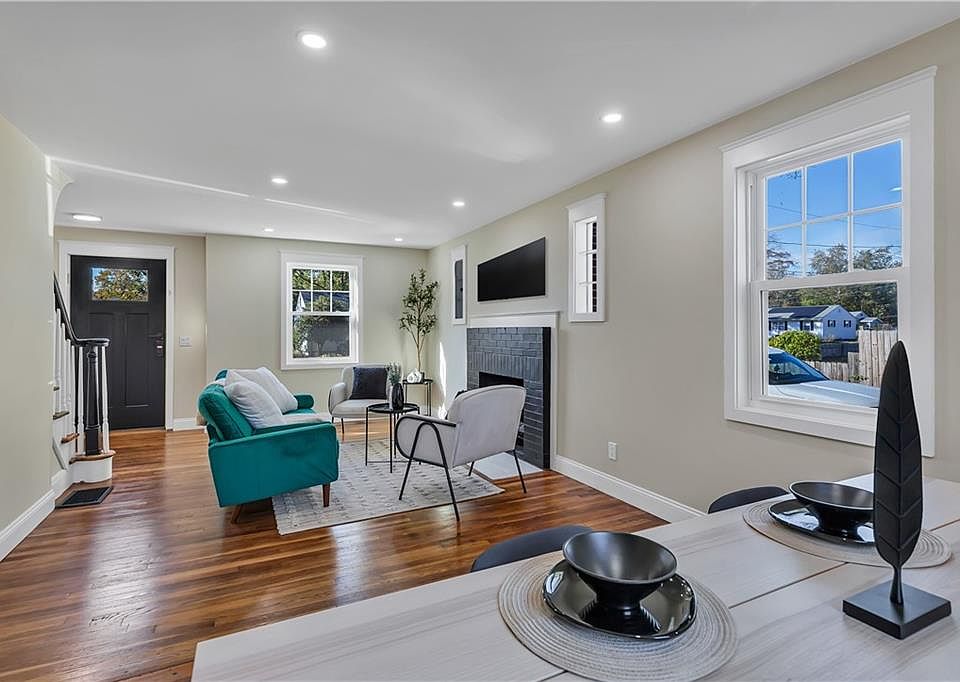 Beautiful newly renovated 3-bedroom, 1.5 bathrooms cape with many updates! Gorgeous hardwood floors throughout and drenched in natural light! This home offers, new kitchen with gorgeous quartz countertops, white cabinetry with gold accents and stainless-steel appliances. Cozy brick fireplace to enjoy on chilly nights! Attached garage, new roof, new front siding, new doors, updated electrical, all new light fixtures, cental air, new replacement windows. 5-minute drive to Oakland beach and restaurants. So much to offer! Don't miss out!