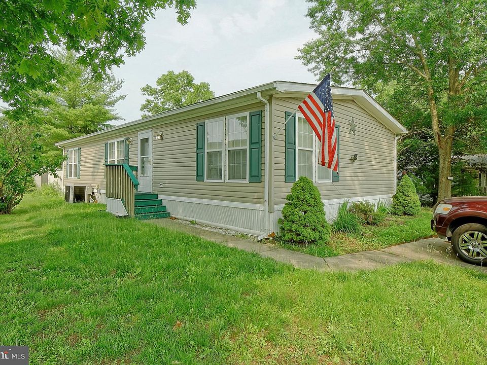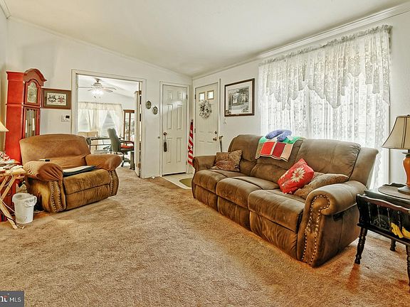 Welcome to Shenandoah Village, a sought-after 55+ park community! This charming 2-bedroom, 2-bathroom home offers approximately 1,400 square feet of comfortable living. The primary bedroom features a spacious walk-in closet, a luxurious jetted garden tub, and a step-in shower. Enjoy a bright, cheerful ambiance with vaulted ceilings, an open floor plan, and abundant windows. The modern kitchen boasts ample cabinetry, generous countertop space, and a convenient breakfast bar overhang. Appliances include a 1-year-old refrigerator, garbage disposal, and dishwasher (unused by the owner), plus a gas stove and double sink. The adjacent laundry room includes a washer and a 3-year-old gas dryer. Relax or entertain on the expansive wrap-around porch/deck, with a covered section perfect for outdoor dining and lounging. The home is equipped with a 7-year-old gas heater, hot water heater, and roof, plus a recently updated central air unit with new refrigerant. Two backyard sheds provide ample storage. Steps from the community center, enjoy easy access to the pool, exercise room, shuffleboard, and more. Embrace carefree, affordable living in this move-in-ready gem. Don’t miss your chance to make this house your home!