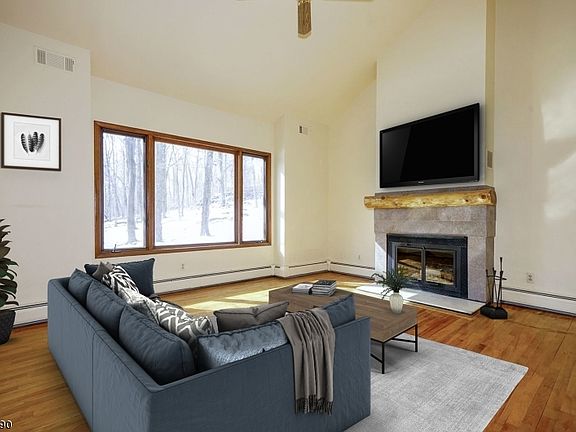 Access to the highly desirable Mountain Lakes High School District, this home is set in a wooded country setting with beautiful views from this secluded contemporary tongue and groove cedar sided, 3 bedroom, 2 1/2 bath home on over 2.5 acres in Boonton Twp. Great walking trails, hardwood floors, updated kitchen and plenty of storage. Attached two-three car garage, storage/work room on lower level. First floor laundry and bonus room that can be used as an office or playroom. Country living with all the city amenities!
