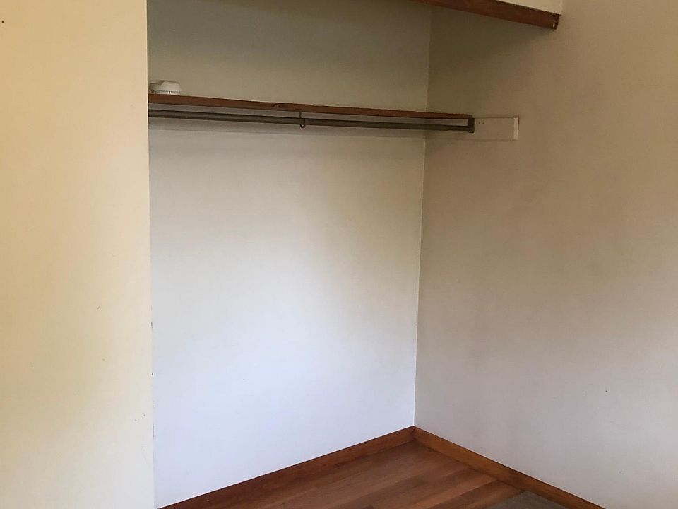 It has air conditioning, 1 bathroom, 2 bedroom apartment. It has a basement with washer and dryer hookup. Forced air heat. Renter pays all utilities.