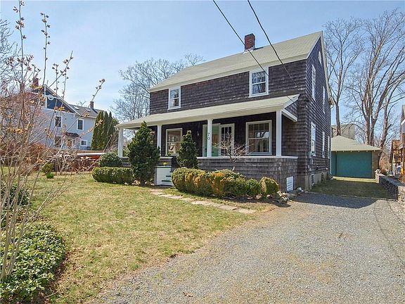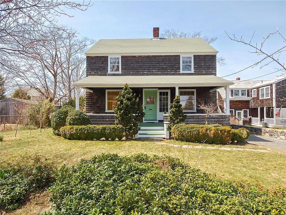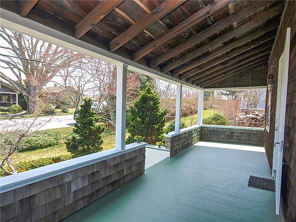 Sweet Colonial with front porch in the village with great natural light. A 1930 original design with large living room, dining room and eat-in kitchen. Details include hardwood floors, glass doorknobs and spacious rooms. There is a newer furnace, water tank, and oil tank. There are 4 bedrooms upstairs. The smallest bedroom is ensuite, and there are 3 additional good sized bedrooms. There is an original garage in the rear of the house. One side has been partially finished so would be perfect as a workshop or studio. The yard is flat and nicely landscaped. What a perfect location to go to town beach, marina, or restaurants and shops.