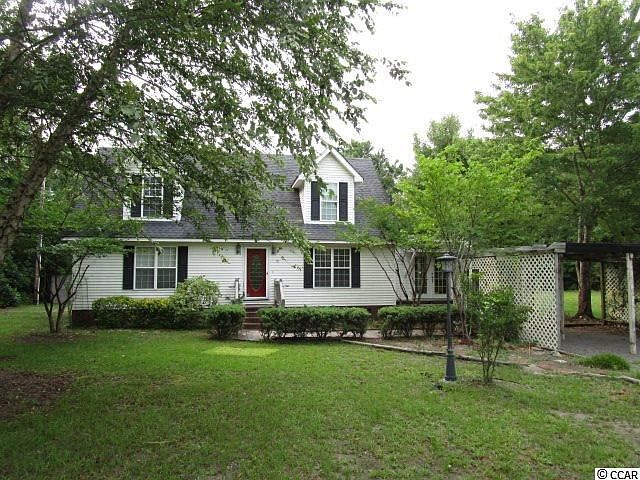 Large 3 bed, 3 bath home on a private lot with mature trees, detached storage, and plenty of room for parking. Move in ready condition. Floor plan features 2 bedroom downstairs including the master bedroom and master bath. Upstairs there is a full bathroom, office suite, and a large bedroom with walk in closet. Enclosed porch and game room/bar make this a terrific primary residence or second home. Outside the city limits. Ibis Avenue is on the Georgetown County list for roads to be paved. NO ridiculous HOA fees or restrictions! Motorcycles OK, RVs OK.
