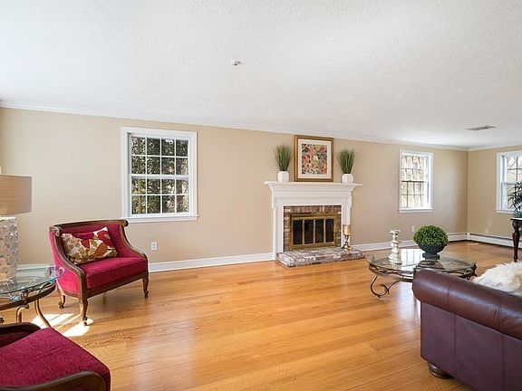 This beautiful home in Medfield's sought-after neighborhood awaits the new owner to create precious memories! Welcoming foyer leads you to a light-filled gorgeous front to back living room, create ambiance with the wood burning fireplace. Easy entertaining in the dining room with wainscoting. Lovely newer kitchen with white cabinets, granite counters, subway tile backsplash, new appliances with Samsung Family Hub refrigerator. Wood beams and cathedral ceiling are details in the family room along with a wood burning fireplace for cold New England nights. Relax in the heated sunroom surrounded by windows that bring the outside in all year long. End the day retreating to a second-floor master suite with remodeled master bath and walk-in closet. Three more spacious bedrooms and full bath with separate tub and standing shower. Light filled basement for workouts, games, and movies. Walk out to the backyard that abuts conservation. Fenced front yard with continuous blooming gardens!