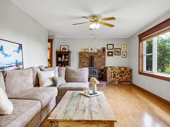 Adorable move in ready 2 bed 1 bath Ranch with beautiful views on 3 acres. It feels like home from the moment you walk in. Entering the home you will find a mudroom with two large closets and access to the garage. Next is the office with custom built cabinets. The kitchen and dinning area opens up to the three season room with an electric stove and wall to wall windows for an amazing view of the white mountains. The livingroom has tons of natural light, a brick hearth with wood storage and a wood stove. Two cozy bedrooms with large closets sit at the end of the house. Off of the primary bedroom is the utility offering a 2021 propane boiler to heat the water and the in-floor radiant heat, room for storage, a drain that is already roughed in for a potential bathroom or easy expansion, the home already has a three bedroom septic system. Vinyl siding, a newer roof and being built on a slab means this home is low maintenance. A newly added garden brings life to the front yard and complements the other perennial gardens and stonewalls on the property. The oversized (26'x36') finished garage has electric door openers and an additional attached storage room on the back. Come see all this home has to offer!