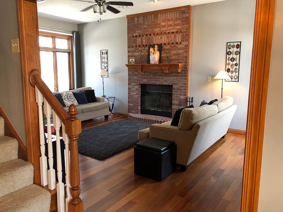 Beautifully maintained one owner home in Innisbrooke. Four bedroom home updated with hardwood floors in the main level. Large kitchen is a great gathering space and has original Corsi cabinets with updated granite counters and stone and glass backsplash. Family room features a beautiful fireplace, large windows that let in substantial amounts of light and a 10’ ceiling. Dining room/office features custom cabinets and bookcases. Both dining room/office and entry feature beautifully textured sunburst ceilings. Open staircase leads to large master bedroom with trey ceiling and a master bath with double sinks, jacuzzi tub, separate room for shower and toilet, and walk-in closet. Three additional bedrooms upstairs with nice closet storage and an updated second full bath. Outdoor space features a beautiful deck that looks out on to a spacious backyard. Nice over sized garage. Great quiet neighborhood in Center Grove area..