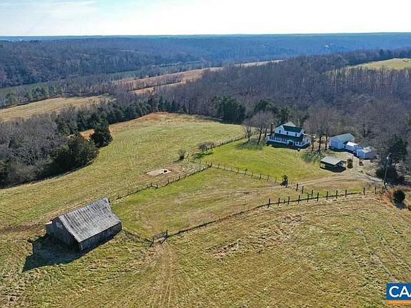 Enjoy total peace and privacy at Black Angus Farm, in southern Albemarle overlooking the James River. Located at the end of a quiet country lane, the 66 acres includes elevated pasture as well as mature forest. There is a 19thC 4 BR/3.5BA farmhouse that has been updated and expanded, as well as a 3 car garage and workshop, and a picturesque old barn that includes equipment storage, equine stalls, and a large hay loft. There are excellent building sites with mountain and river views. 2 wells, multiple springs, and auto-waterers for livestock, plus long frontage on Totier Creek just upstream from its confluence with the James River. Surrounded by large farms and estates, and adjoining a County park. 5 minutes from Scottsville.
