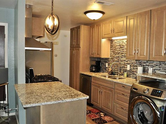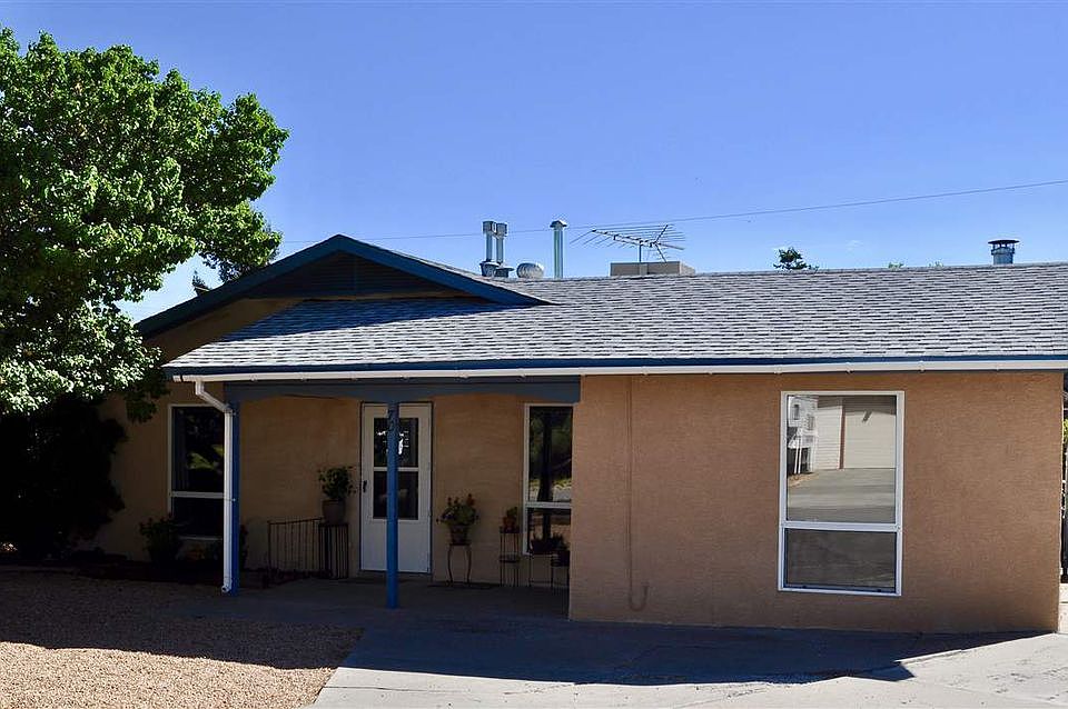 Great single family home in White Rock! This move in ready property has very recently been remodeled and well maintained with an expansive list of upgrades and repairs made in the last year (see MLS docs). Brand new kitchen with custom cabinets and granite countertops really open up the space and offer lots of versatile storage options. All new appliances convey, including washer & dryer. Just under 1400 square feet, this property features 3 bedrooms, 1.5 bathrooms, and 2 living areas. Converted garage space has a nice wood burning stove to keep you warm. Newer furnace and brand new evaporative cooling system vented through overhead vents.***Original slab duct work has been abandoned and the home is heated via an overhead ducting system. Large backyard with a one- car detached garage/workshop and shed. Room for a RV or camper to park off street. Great location close to Chamisa Elementary school, shopping and dining.