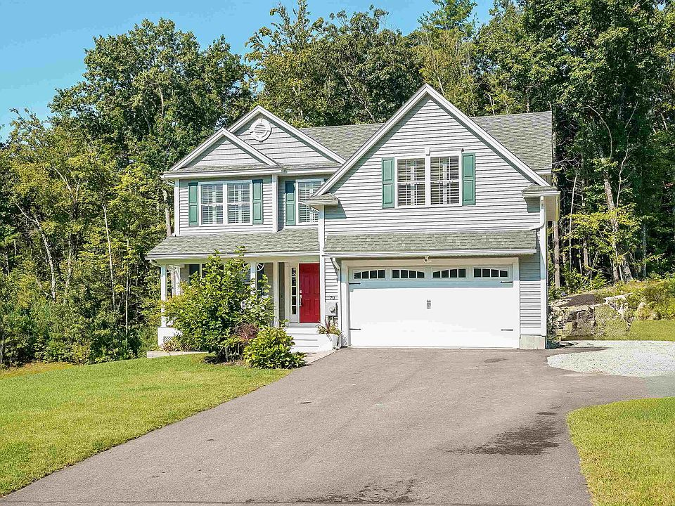 Back on the market, pending release. This lovely home at 70 Juniper Circle could be your forever home. A wonderful neighborhood surrounded by 60 acres of conservation land for use by the neighborhood only. Freshly painted interior, Abundant cherry cabinets with granite island & counters in the kitchen as well as in each bathroom. KitchenAid stainless steel appliances includes hybrid gas cooktop with electric oven, fridge, dishwasher & wall-mount microwave. Ceramic tiled kitchen floors, bathrooms and hallway. Open concept kitchen to living room. Enjoy outside entertaining on your lovely deck and patio with tranquil rock river waterfall feature. Cozy up to the living room fireplace to enjoy a good book or watch your favorite show. Hardwood floors in dining room, office and second floor hallway. Dining room has lovely wainscoting. Hardwood stairs lead to the second floor. Spacious master bedroom provides room to relax, as well as walk-in closet and full bath. There are three additional bedrooms, a full bath and a laundry room: washer & dryer included. Lovely landscaped yard with abundant pear trees that you can enjoy from your front farmers porch. Electric dog fence. Ample driveway parking & 2-car garage. Auburn offers hiking around scenic Lake Massabesic and Massabesic Audubon's numerous trailheads, as well as boating and biking. All that is missing is you!