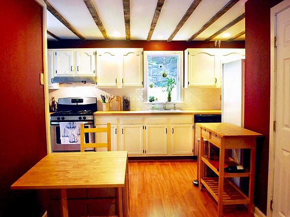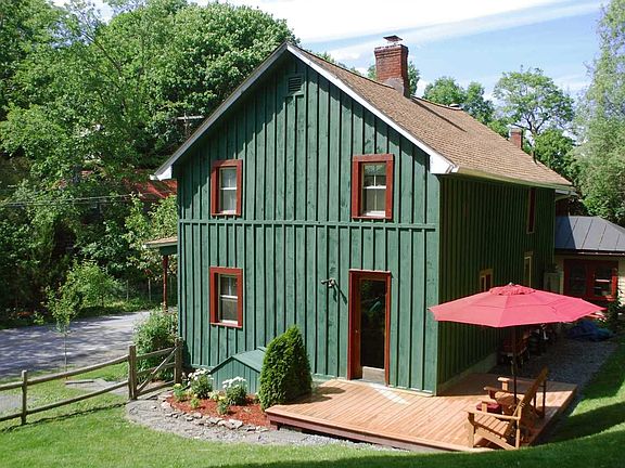 Circa 1890 Board & Batten charmer in the hamlet of Rhinecliff. First floor presents a large sunny living room, updated kitchen w/ dining area and half bath. Upstairs is two bedrooms, office/sitting area and full bath. New roof and fresh front porch. Outside, new deck overlooks fenced lawn plus wooded lot. Off street parking for 3+ cars. So close to the train you can almost feel it. Come to Rhinecliff.