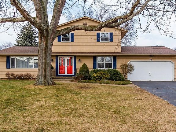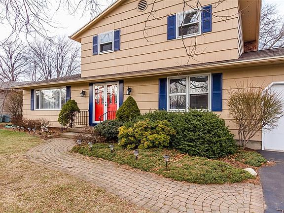 You will love this move in ready 4 bedroom Greece colonial! Terrific location close to everything! Minutes away from Durand Eastman Beach! Situated in a low traffic neighborhood, this 2,400 SqFt spacious home offers multiple different living spaces including a formal living room and dining room, large family room with statement making wood burning fireplace and enjoy the sunrise in the private florida room with vaulted ceilings. Upgrades galore including new hardwood floors, new furnace 2021, fresh modern paint colors throughout & more! Large kitchen offers upgraded cabinets, extensive cabinet storage, eat-in space & all appliances included. 1st floor bedroom opportunity could be a perfect office space with attached 1/2 bath. Refinished hardwood floors on stairs brings you upstairs to 3 beds including the spacious master suite! Private backyard boasts a paver patio, matching insulated shed and mature trees! Plus a partially finished basement space with tons of storage! You do not want to miss this one. Delayed negotiations until 10AM on Sunday, March 14th.